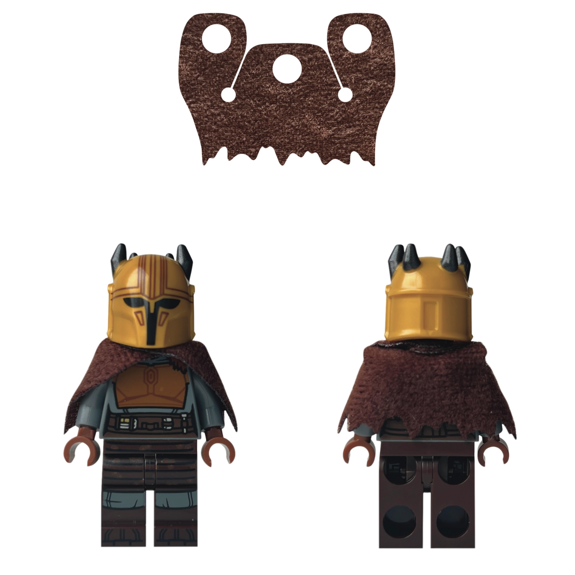 Made from suedette (100% polyester). Will fit a minifigure with standard legs.